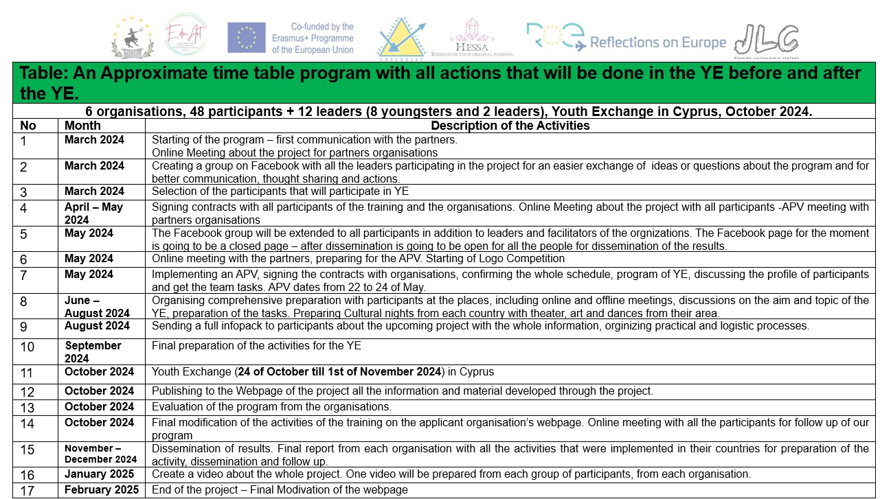 For the Youth Exchange that is going to be from 24 of October till the 1st of November 2024 all the National Group need to prepare the following: